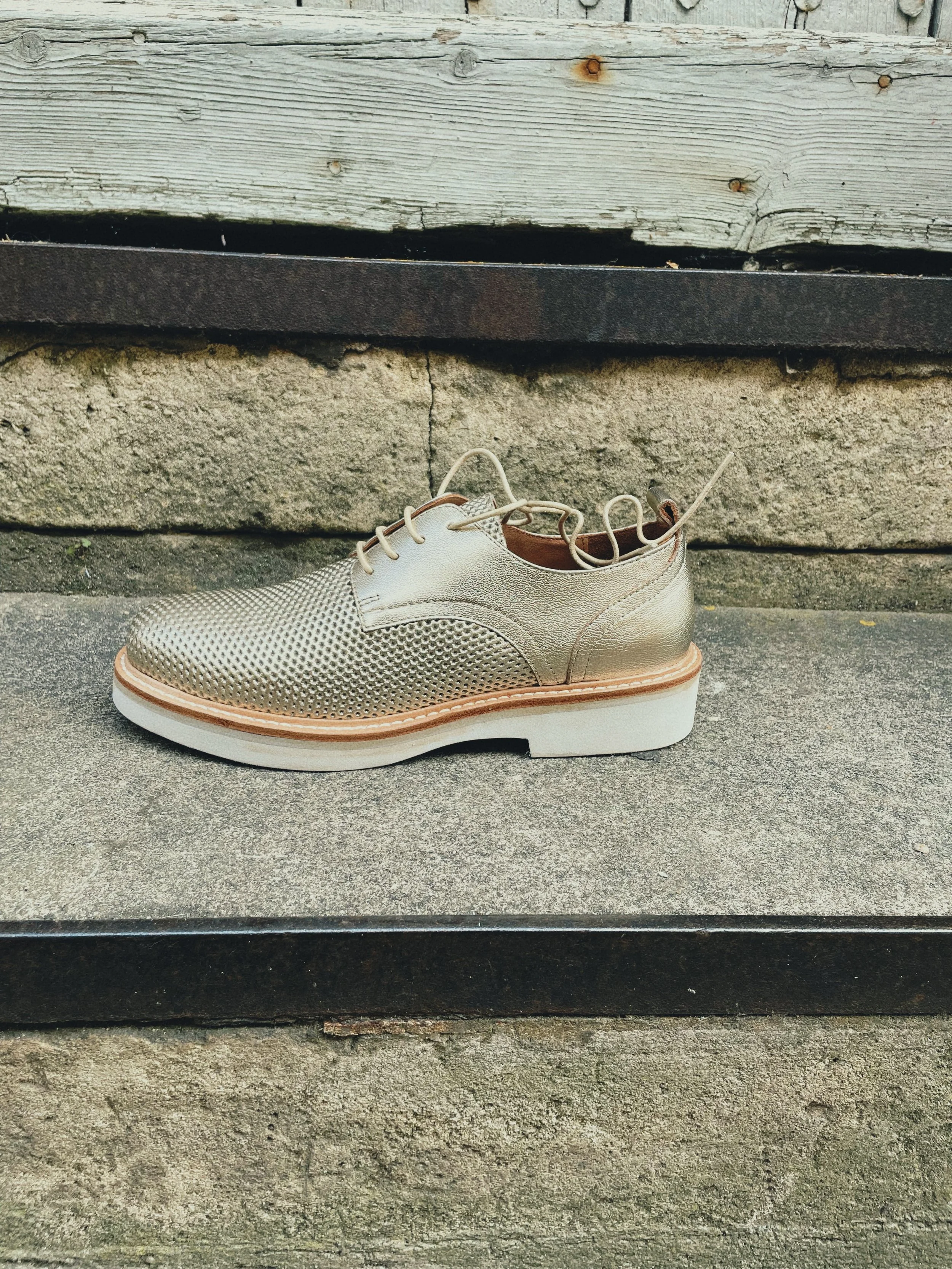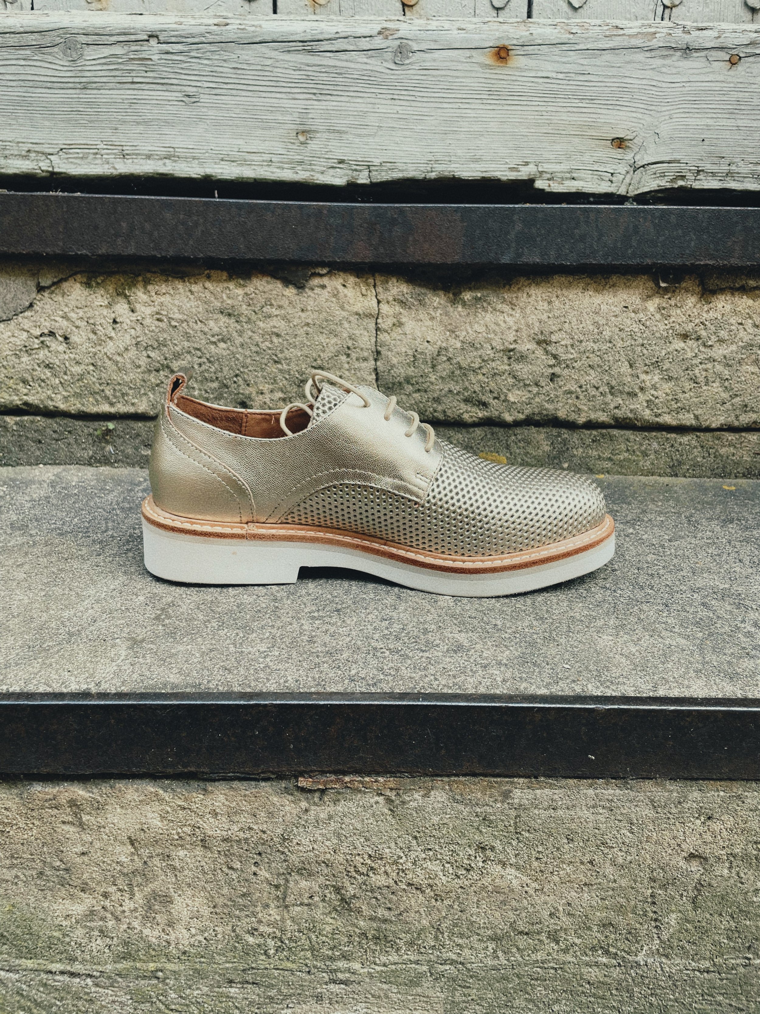 Les derbies dorées Gap sont le choix parfait pour apporter une touche d’éclat à vos tenues. Elles sont dotées de lacets dorés et d’un petit talon de 2,5 cm vous assurant un parfait confort. Légères et respirantes, elles sont idéales pour la saison estivale. Ces derbies pour femmes vous offrent une touche d’originalité tout en gardant un côté assurément féminin avec sa couleur dorée. Vous pouvez les porter avec une robe fluide, un pantalon chic ou un jean décontracté, selon l’occasion.