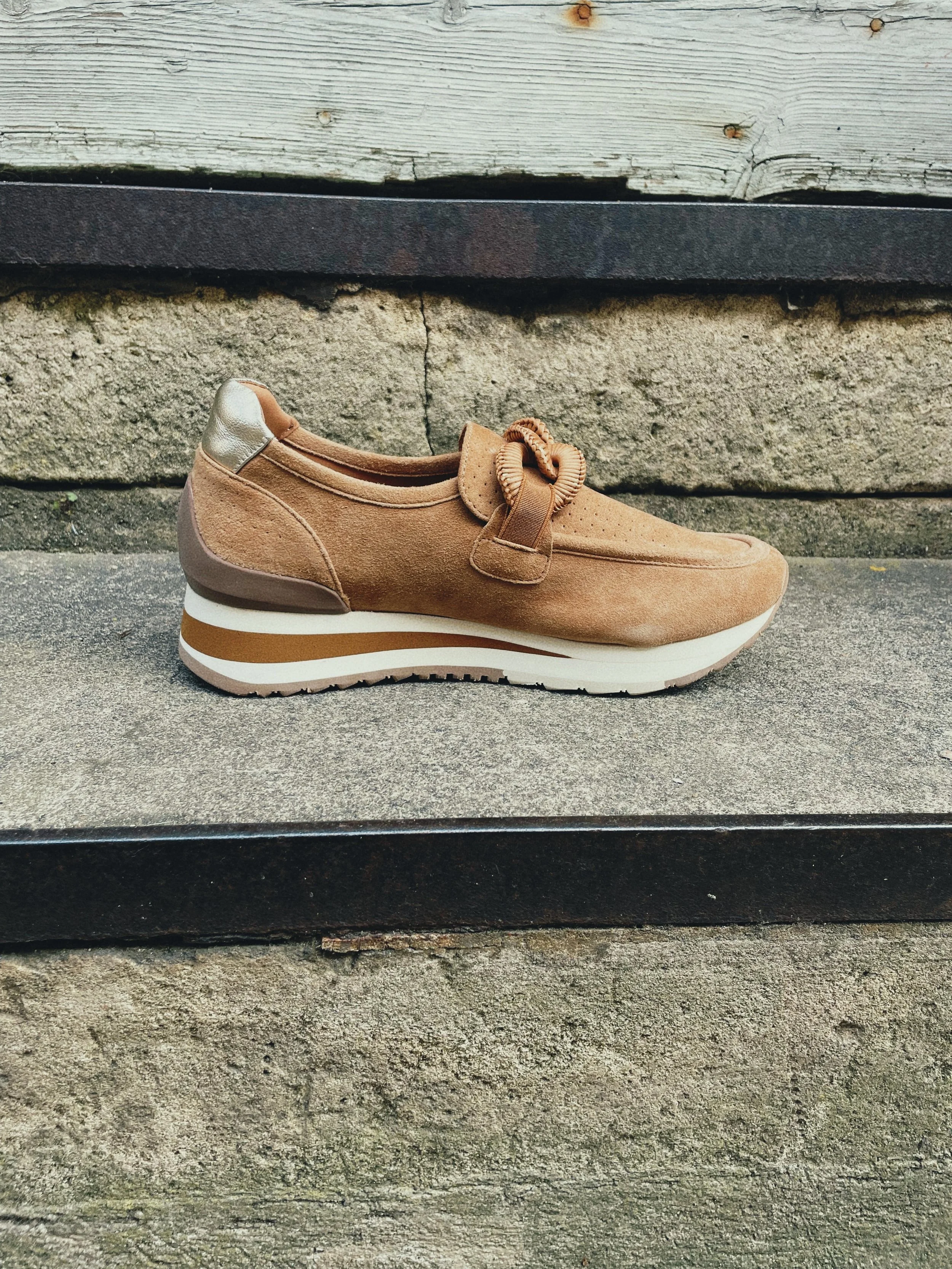 Laissez-vous séduire par le nouveau mocassin velours marron Xena, alliant élégance et originalité. La particularité de ce modèle tient dans sa chaîne à trois maillons en rotin sur le dessus du pied. Celle-ci apporte une touche audacieuse et moderne à votre look. Parfait pour les femmes qui cherchent à se démarquer et à sortir de l’ordinaire !